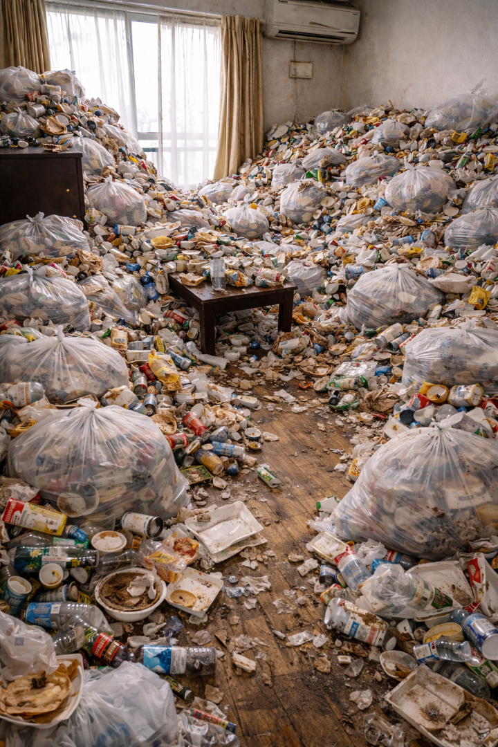 床から50cm~1mゴミが積みあがっている状態。